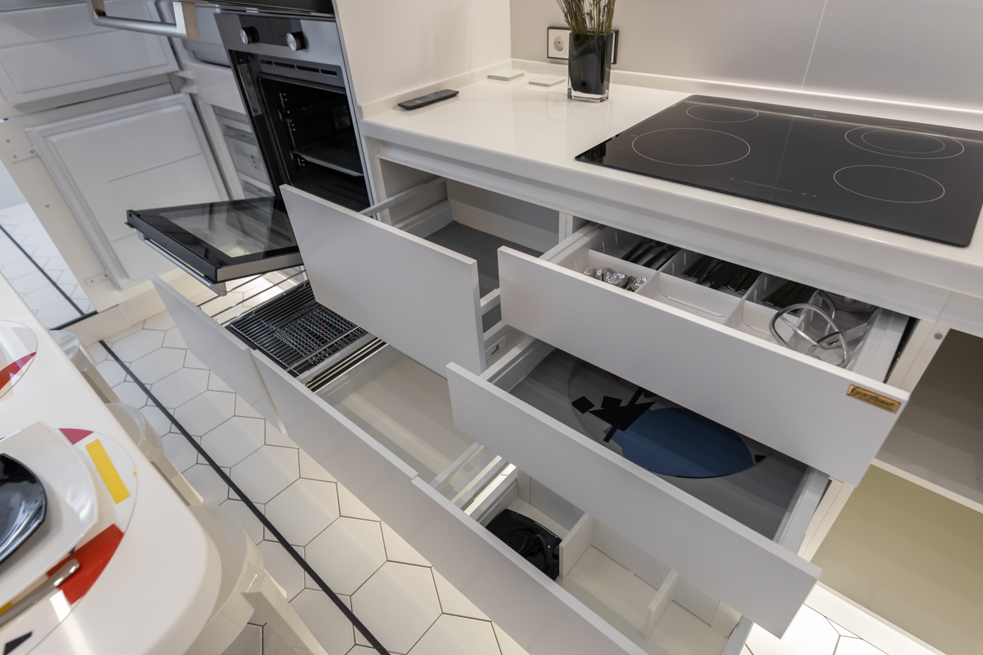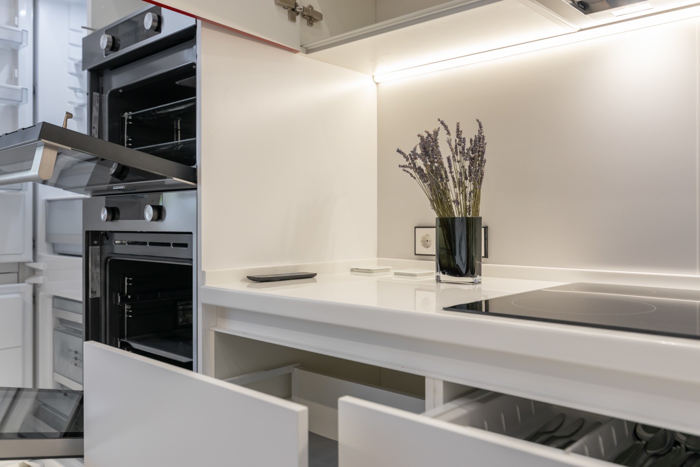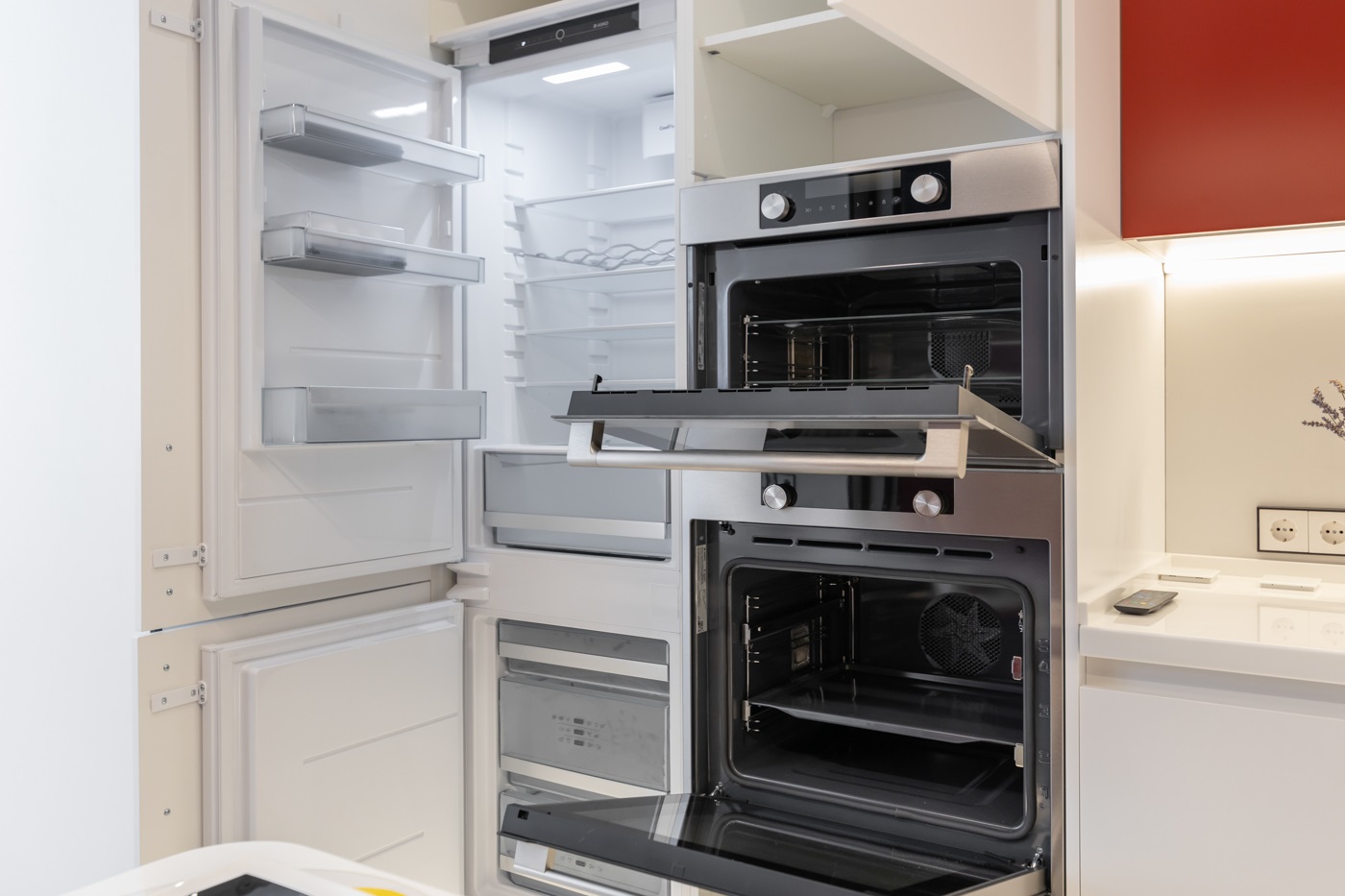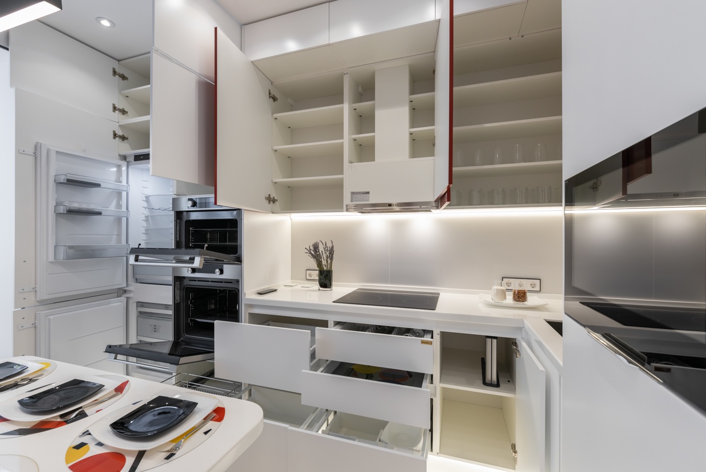 Этот проект покорил сердца многих наших клиентов. Одновременно яркий, стильный и универсальный- это всё про него. При выборе кухонного гарнитура мы решили остановиться на модели Милан в двух цветах: Ral 3011 Коричнево красный и Ral 9003 белый. Кухня получилась очень функциональной за счет большего количества встраиваемой техники. А изюминкой проекта стала ТВ зона, расположенная в колонне по правой части кухонного гарнитура.